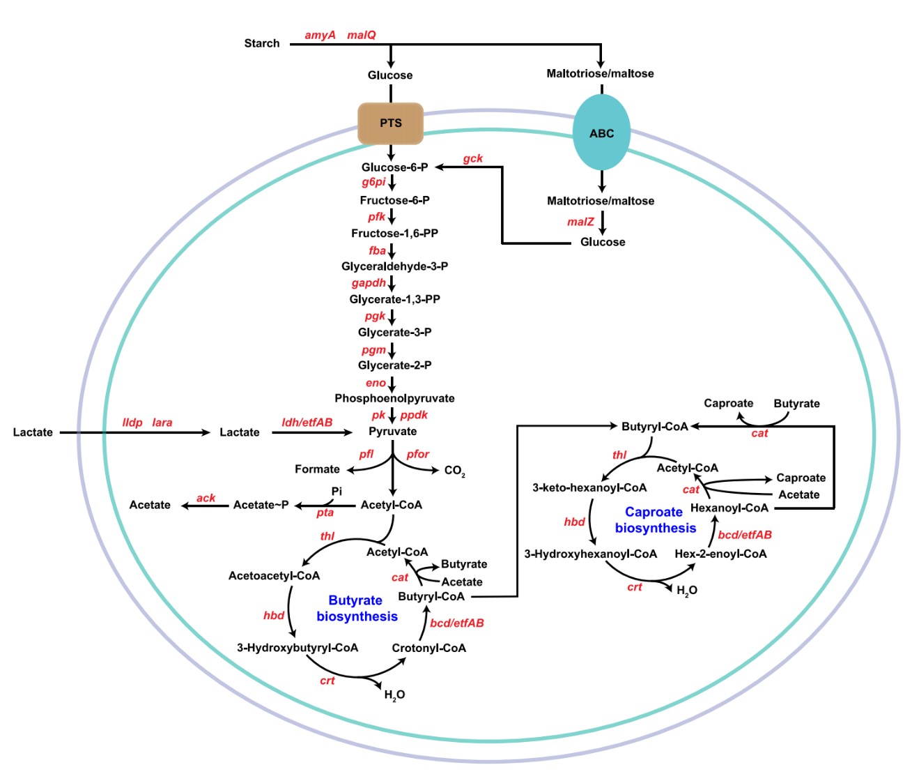 Caproicibacterium sp. JNU-WLY1368/LBM19010 产酸代谢途径