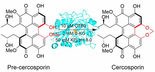 图1. CTB9体外催化pre-cercosporin转化为cercosporin
