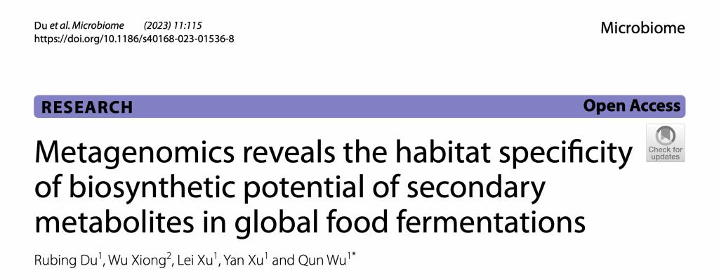近期,我校世界杯官网徐岩教授团队吴群教授课题组在发酵食品微生物方面取得重要进展,研究成果“Metagenomics reveals the habitat specificity of biosynthetic potential of secondary metabolites in global food fermentations”正式发表于Microbiome(Q1,IF: 16.837)。Microbiome是微生物领域的国际权威期刊,在微生物领域中排名6/158 (期刊引用指数JCI)。
