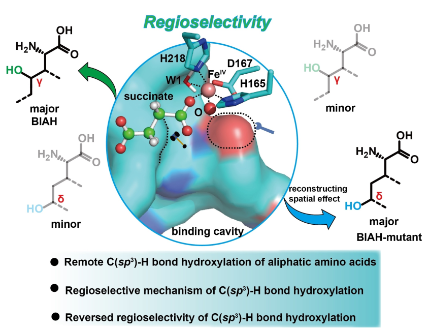 近期,我校世界杯官网刘立明教授团队在脂肪族氨基酸远程C(sp3)-H键羟基化区域选择性调控方面取得重要进展,研究成果“Rational Design of the Spatial Effect in a Fe(II)/α-Ketoglutarate Dependent Dioxygenase Reverses the Regioselectivity of C(sp3)-H Bond Hydroxylation in Aliphatic Amino Acids”正式发表于Angewandte Chemie International Edition (IF =/info/1021/ /16.1) (https://doi.org/10.1002/anie.202406060)。