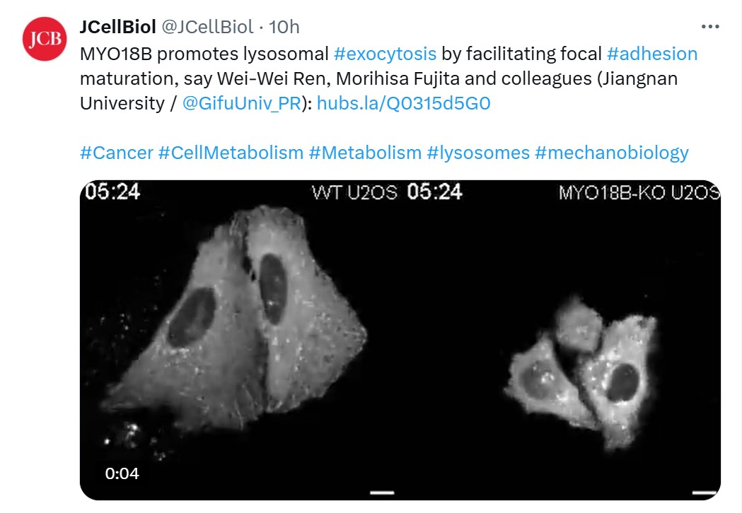近日,我校世界杯官网中西秀树教授团队在溶酶体分泌调控截短甘露糖型N-聚糖的细胞膜表达方面取得重要进展,研究成果“MYO18B promotes lysosomal exocytosis by facilitating focal adhesion maturation” 正式发表于Journal of cell biology(Q1,IF=7.4,https://doi.org/10.1083/jcb.202407068),JCB官网对该成果进行了推介。