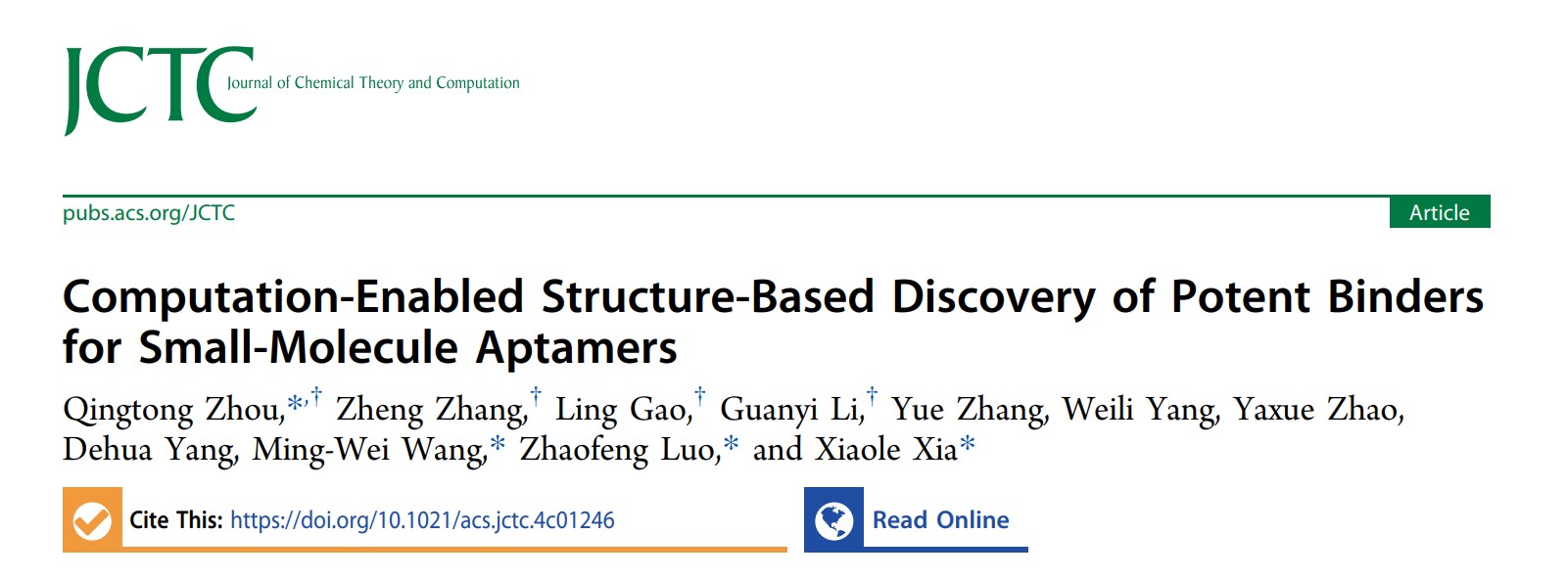 近期,世界杯官网夏小乐教授团队联合复旦大学周庆同教授在核酸适配体的开发和利用研究中取得重要进展,研究结果“Computation-Enabled Structure-Based Discovery of Potent Binders for Small-Molecule Aptamers”正式发表于计算化学领域顶刊《Journal of Chemical Theory and Computation》(一区,IF=5.7)(https://doi.org/10.1021/acs.jctc.4c01246)。