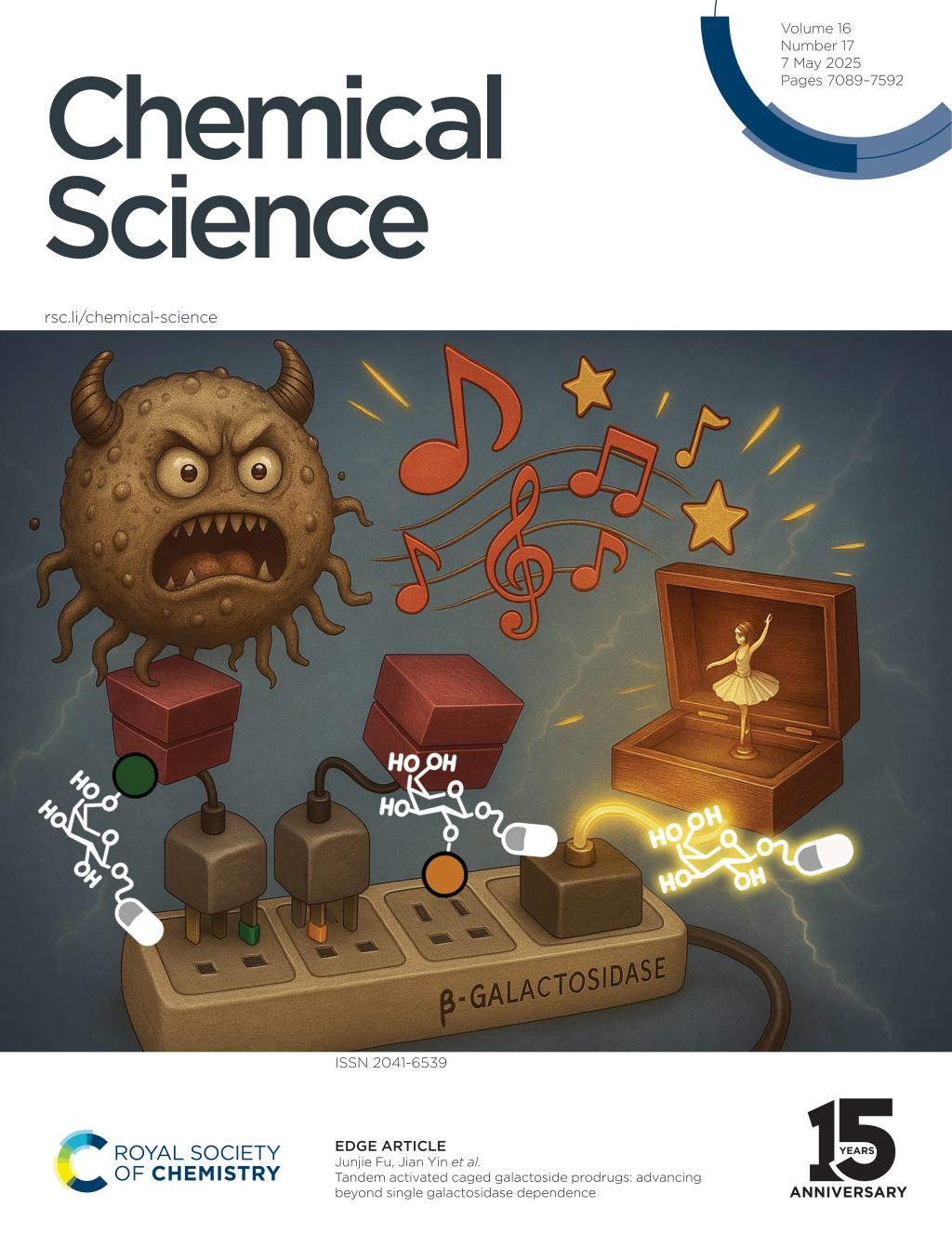 近日,世界杯官网、糖化学与生物技术教育部重点实验室尹健教授团队在新型糖苷类前药研究方面取得新进展,研究成果“Tandem activated caged galactoside prodrugs: advancing beyond single galactosidase dependence”发表于英国皇家化学会(RSC)旗舰期刊Chemical Science(Chem Sci 2025, 16, 7173, DOI: 10.1039/D5SC00722D),并被选为内封面文章。