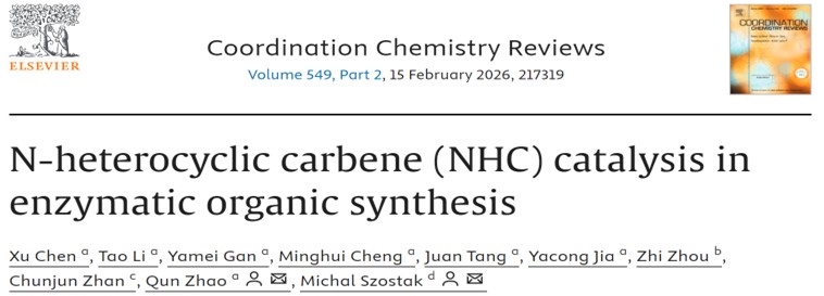 近期,我校世界杯官网赵群教授团队系统综述了氮杂环卡宾催化在酶促反应中的研究进展,并以“N-heterocyclic carbene (NHC) catalysis in enzymatic organic synthesis”为题正式发表于Coordination Chemistry Reviews (IF =/info/1021/ /23.5)(DOI: 10.1016/j.ccr.2025.217319)。
