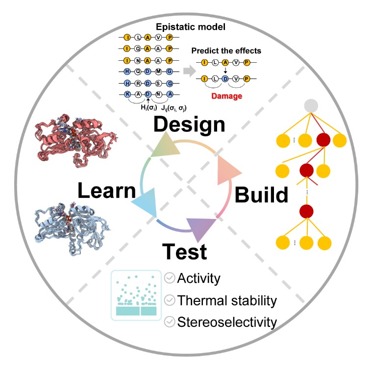 在绿色化学与生物制造快速发展的背景下,酶催化因其高选择性和环境友好性,已成为手性药物及精细化学品合成的重要手段。其中,羰基还原酶能够高效催化前手性酮向手性醇转化,在多种药物关键中间体的制备中具有重要应用价值。然而,天然酶普遍存在活性不足、稳定性有限以及底物适应性较差等问题,更关键的是,多种性能之间往往相互制约:活性提升常伴随稳定性或选择性的下降,这一“功能权衡”长期制约着酶工程的发展。