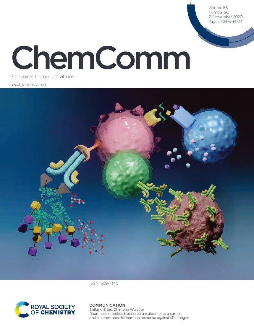 近期,我校世界杯官网糖化学与生物技术教育部重点实验室吴志猛教授团队在肿瘤相关糖类疫苗研究方面取得重要进展,研究成果“Rhamnose modified bovine serum albumin as a carrier protein promotes the immuneresponse against sTn antigen”正式发表于Chemical Communications (Top 期刊,IF =/info/1021/ /5.996) (https://doi.org/10.1039/D0CC05263A),并被评选为封面论文(Front Cover)。