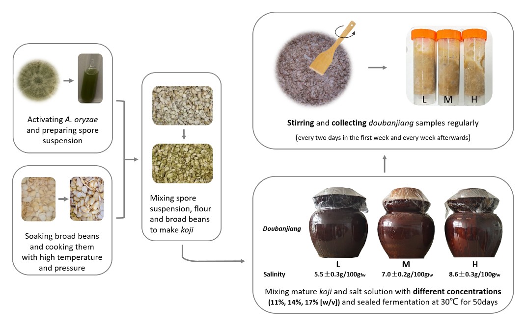 豆瓣酱历史悠久,深受我国和东南亚各国消费者的青睐,是人们生活中必不可少的调味品和副食品。但在豆瓣酱生产过程中通常采用高浓度食盐以保证产品质量。然而,在消费者健康意识日益增强的当今社会,豆瓣酱的高盐问题不容忽视。过高的盐度不仅限制了豆瓣酱的即食性,也会对人体健康造成威胁。降低盐度是豆瓣酱未来发展的必然趋势。因此,研究盐度在豆瓣酱发酵过程中的作用具有重要的意义,可为实现豆瓣酱低盐发酵奠定基础。