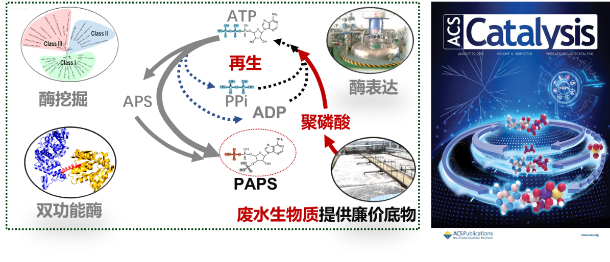 近日,我校糖化学与生物技术教育部重点实验室、未来食品科学中心康振教授课题组在3′-磷酸腺苷-5′-磷酸硫酸(PAPS)生物合成领域取得新突破,研究成果“Closed-Loop System Driven by ADP Phosphorylation from Pyrophosphate Affords Equimolar Transformation of ATP to3′-Phosphoadenosine-5′-phosphosulfate”以封面形式发表了在ACS Catalysis(https://pubs.acs.org/doi/10.1021/acscatal.1c02004),2020级博士生胥睿睿和副研究员王阳为该论文共同第一作者,康振教授为通讯作者。