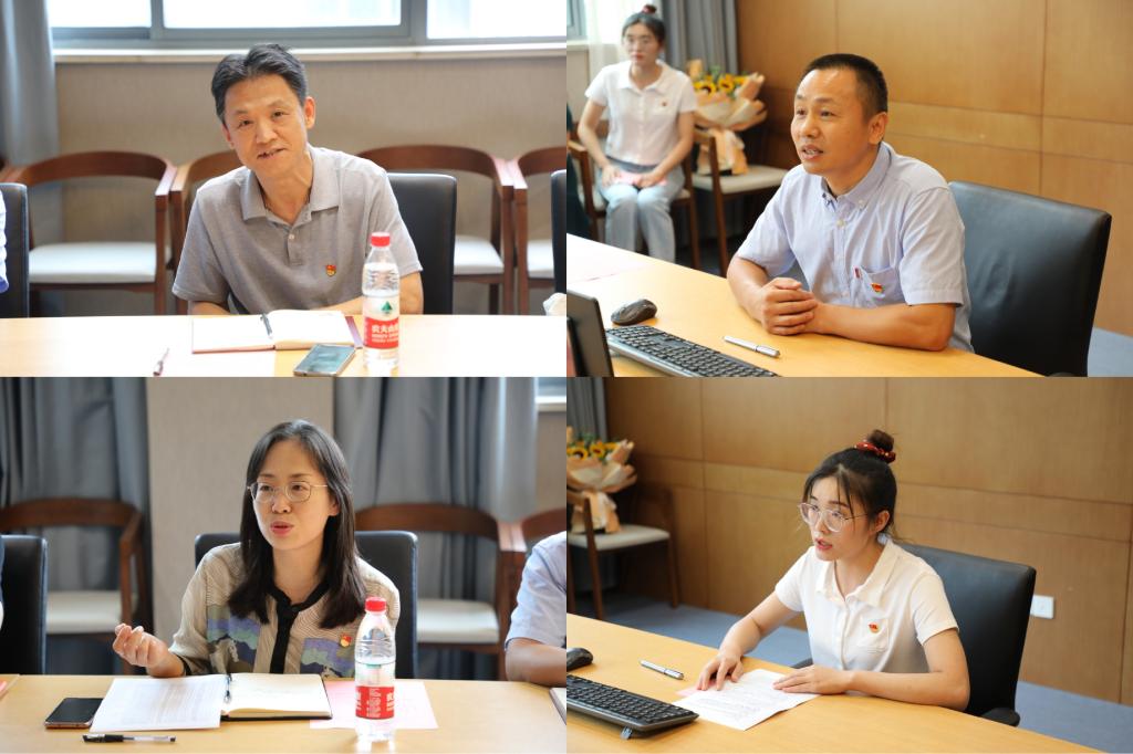双方结合支部建设、疫情防控以及工作学习科研情况进行了座谈交流。学生党员进一步学习汲取教工支部开展支部工作的经验,并对增强资源共享、深化指导交流提出了建议和期待。党校专职副校长兼党委组织部副部长周雪晖肯定了学生支部建设成果,同时也期望支部在活动形式创新丰富、组织形式合理高效、建设成果凝练推广方面继续加强。机关党委书记朱新伟阐述了师生支部共建的初衷和期望,鼓励学生党员坚定理想信念、发挥主动性,把个人的成长融入国家的发展和民族的富强,引领带动更多优秀的青年加入党组织。