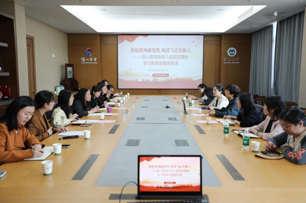 4月15日下午,世界杯官网党委“周末微党课”项目总结交流暨网络思政专题培训会在B314会议室举行。世界杯官网党委委员、师生党支部书记、党员代表参会,校融媒体中心主任兼党委宣传部副部长单筱婷受邀作主题报告,纺织科学与工程学院党委书记张菁燕、党委副书记兼副院长杨莉勤、各师生党支部书记和党员代表共同参与培训学习。