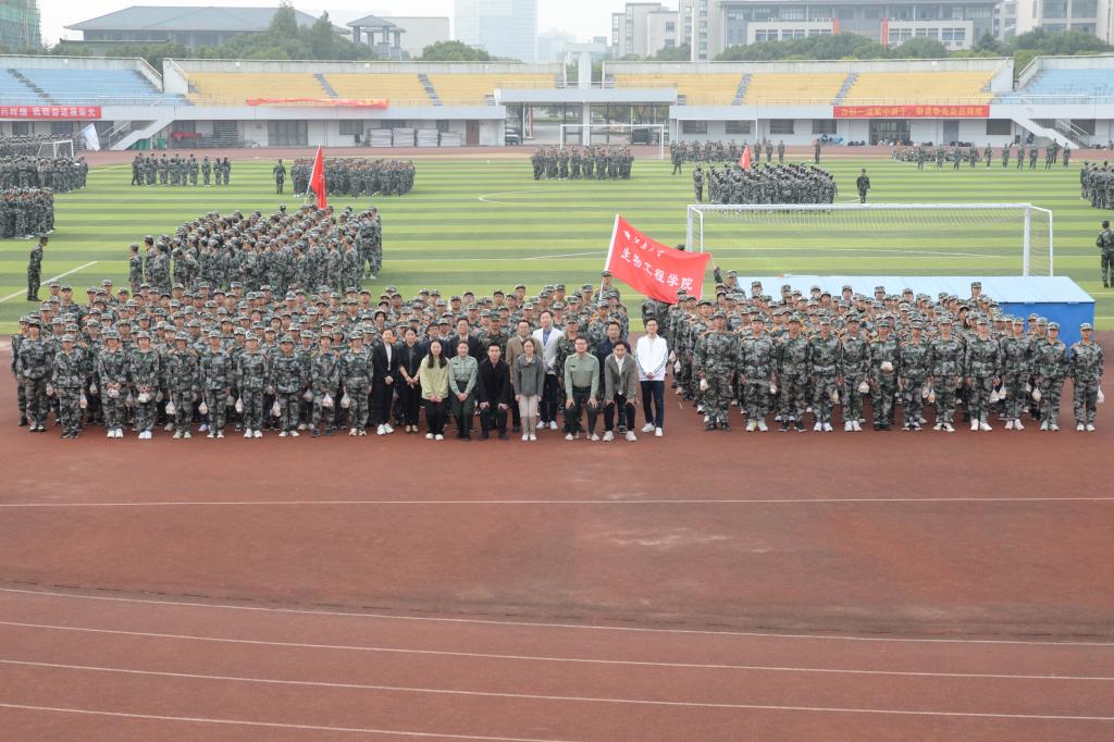 在飒爽的秋风中,同学们首先在教官的口令下认真地展示军训成果,队列中“理想上膛,斗志昂扬,军中骄子,生工最强”的口号响彻云霄,齐步动作整齐划一,手臂摆动笔直有力,正步落地的脚步声铿锵有力,军训标兵甩头迅速敬礼标准,旗手高举的红旗迎风飘扬,更展示了生工人的军训风采。老师们高度赞扬了同学们优异的军训成果,并对教官们的辛勤付出表示感谢。2021级本科生王敏浩作为新生代表发言。他对一直支持帮助教导同学们的领导、老师、教官们表达最真挚的感谢和敬意,并代表2021级新同学们表态:坚持刻苦训练,展现一流风采。军训的进程,就像是环环相扣的乐章。随后,一排同学们斗志昂扬高唱《团结就是力量》,二排同学们带来了《强军战歌》,展示出饱满的精神和昂扬的斗志。