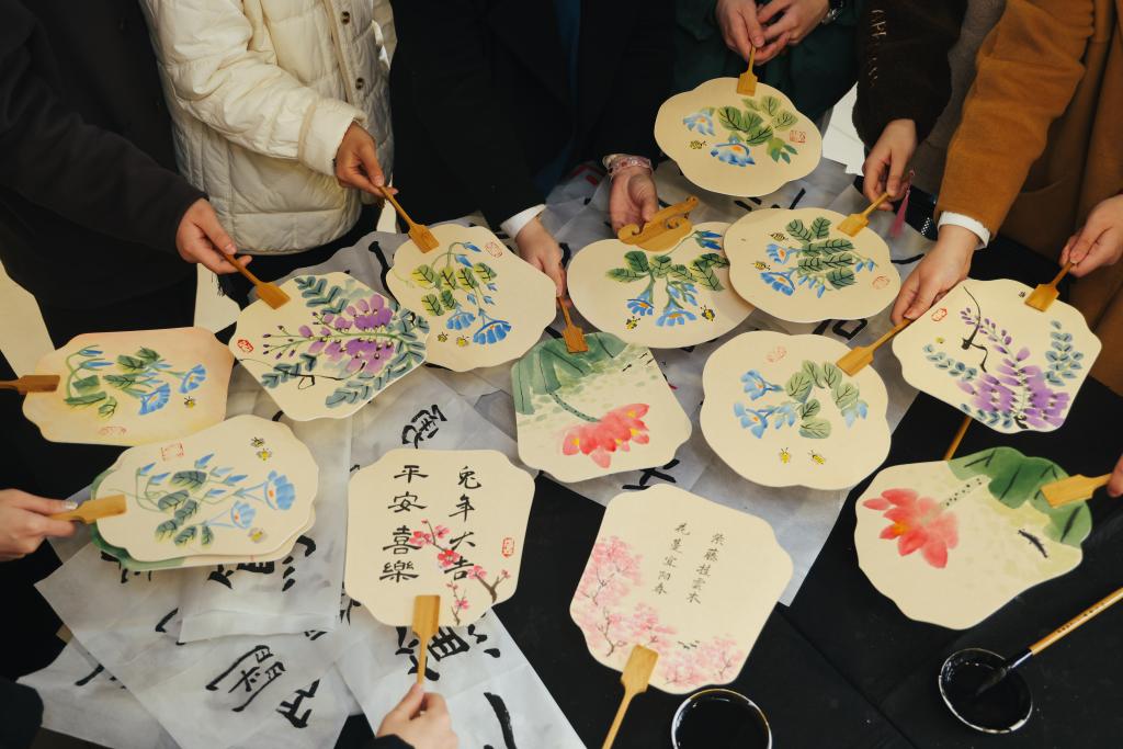 学习过后,同学们分组进行书法和国画体验。专业教学老师为同学们详细介绍了毛笔、宣纸、毛毡等基本工具的使用,向大家展示了书法和绘画中常用的笔法。同学们铺纸研墨,专注临摹,一时间翰墨飘香、氛围浓郁。绘画组《万紫千红总是春》《映日荷花别样红》色彩明丽,朝气蓬勃、生机盎然之意跃然纸上,书法组用古朴自然的隶书、体势方正的楷书写下《科技是第一生产力人才是第一资源创新是第一动力》《踔厉奋发勇毅前行》《笃学尚行止于至善》《善于实践勇于创新》等。一幅幅作品虽尚显稚嫩,流露的是同学们的拳拳真情。