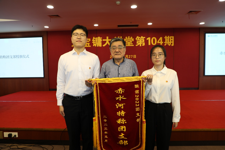 会上举行了“赤水河”特称团支部交接仪式。高景炎将特称团支部旗帜授予新一届“赤水河”特称团支部——酿酒2202团支部,并希望酿酒2202团支部能够努力传承和发扬“赤水河特称团支部”的优良传统,追溯发酵行业发展历程,传承并弘扬善于实践、勇于创新的发酵精神,以身作则,让“赤水河”特称团支部成为优秀的榜样团支部。