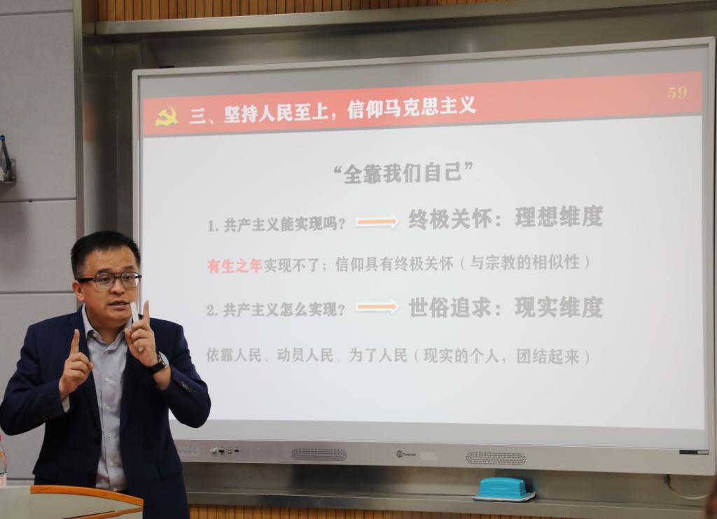 5月23日,“青马工程”培训班理论学习系列讲座第三讲,由世界杯官网马克思主义学院唐忠宝教授以《学习新思想坚定理论自信》为题开讲。唐忠宝教授围绕学习贯彻习近平新时代中国特色社会主义思想,以党的二十大精神为切入点,聚焦“十个明确”的精神实质和丰富内涵,重点从“反对历史虚无主义”“坚持中国式现代化”“信仰马克思主义”等方面着眼分析,以当今网络热点话题讨论为案例开展解读和交流,旨在深入浅出地以年轻人喜闻乐见的宣讲形式和思维方式,向青马班学员传播新时代新思想,引导广大青年树立正确价值观、厚植爱国情怀,与国家同呼吸、与人民共命运,唐忠宝教授的精彩分享为全体学员带来一场耳目一新的思想盛宴。