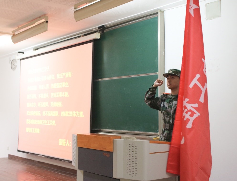 随后,2023级本科生代表王泽霖举起军训旗帜,带领全体参训同学宣誓。在铿锵有力的军训誓词中,全体参训新生激情澎湃,展现出生工学子超凡魄力。生工学子定能以青春之名,应军训无限挑战;以少年之梦,将热血挥洒四方。