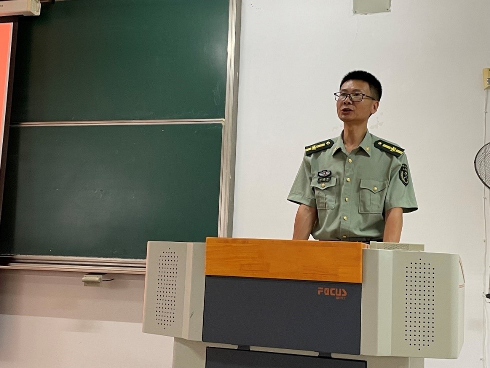 接着,周杰从军训人员编排、军训内容、内务标准、作息时间、成绩考核、温馨提示等六个方面介绍了本次军训的总体安排,在激励参训学生积极参训同时也提出学生要注意安全,劳逸结合。