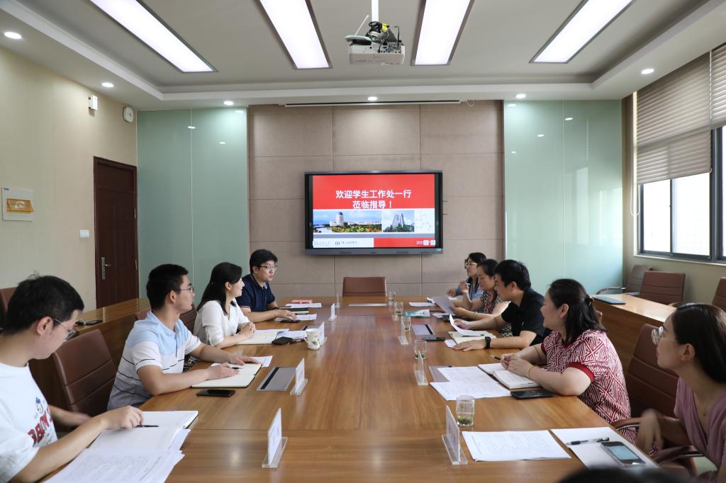 9月7日上午,校学生工作处处长周伟涛、副处长蒋洁等一行来世界杯官网调研指导学生工作。学院党委副书记、副院长林丹,学工办主任周春江及全体辅导员参加调研交流。