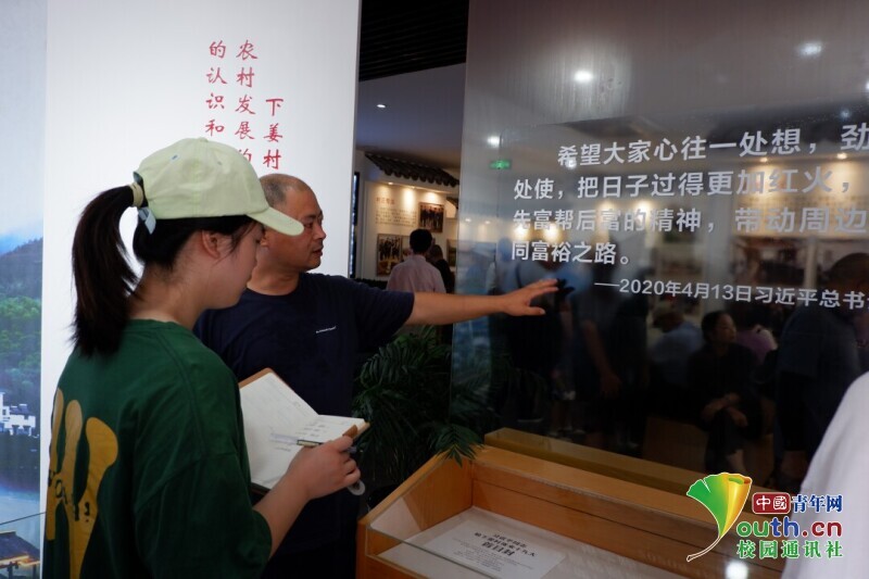 图为团队成员听讲解员介绍习近平总书记口信。中国青年网通讯员 苏鑫 摄