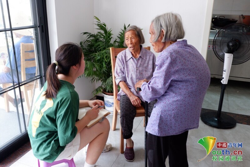 图为团队成员在老年食堂与奶奶们交谈。中国青年网通讯员 苏鑫 摄