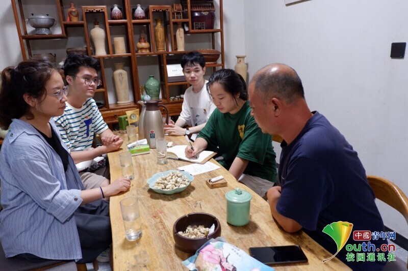 图为团队成员采访篾匠、根雕传承人。中国青年网通讯员 苏鑫 摄