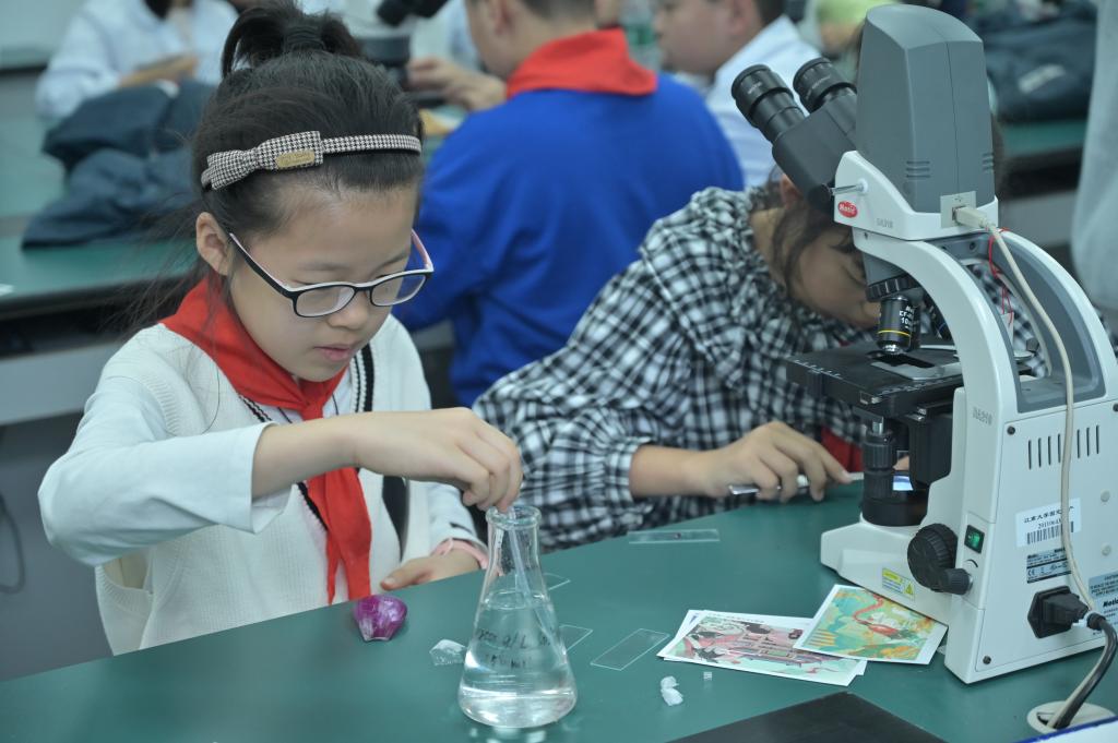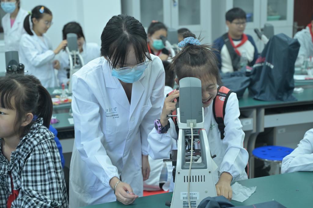 紧接着,在世界杯官网实验教学平台、食品发酵国家级实验教学示范中心,支部党员为小朋友精心设计了“酵母吹气球”“细胞的质壁分离观察”两个动手小实验。看到瓶子上的气球被酵母菌吹大,用显微镜观察到细胞中小小的“气泡”从大逐渐变小,然后又从小变大的有趣现象,小朋友们惊叹连连,对这五彩斑斓的微观世界痴迷不已,充分体验了微生物世界的奇妙。