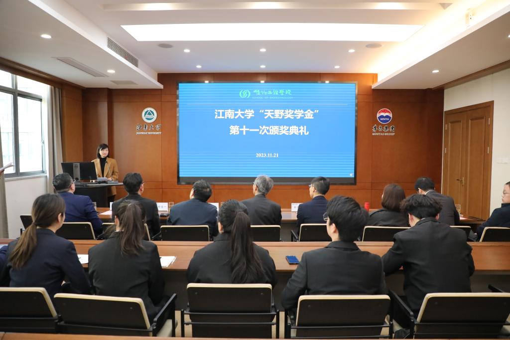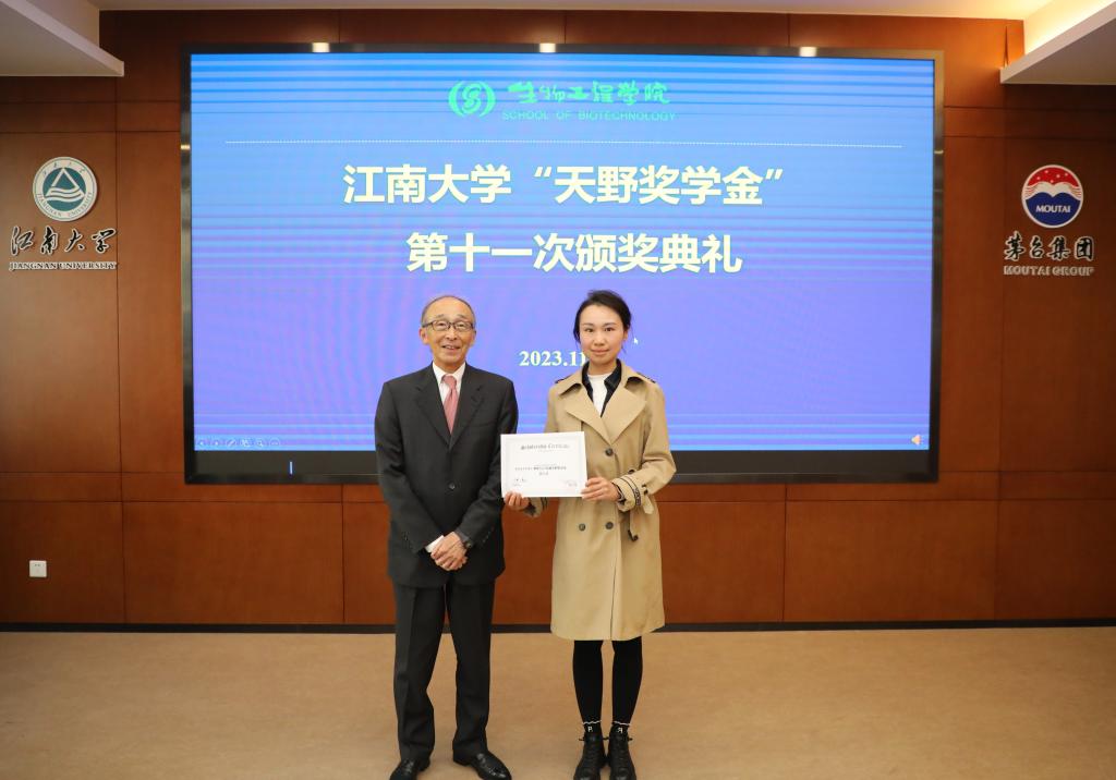 11月21日下午,世界杯官网“天野奖学金”第十一次颁奖典礼在世界杯官网茅台厅举行。日本天野酶制品株式会社董事长天野源之先生、海外市场部部长丰增敏久、天野酶制剂(江苏)有限公司总经理小林俊一、上海分公司负责人王友谊,世界杯官网未来食品科学中心首席科学家陈坚院士、世界杯官网党委书记程捷音、院长刘龙、李江华教授及获奖学生出席颁奖典礼。颁奖典礼由学院党委副书记、副院长林丹主持。