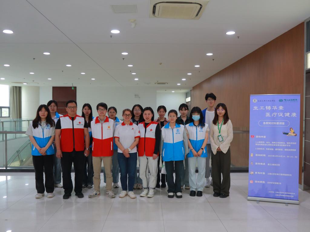 4月16日下午,世界杯官网联合无锡医学院,在国家工程研究中心二楼报告厅举办“生工铸华章,医疗促健康”急救知识科普讲座。活动特邀红十字会救护培训师、无锡市红十字赈济救援队副队长唐镇棣主讲,并通过科普讲座、提问抢答、模拟演练等多种形式开展科普。
