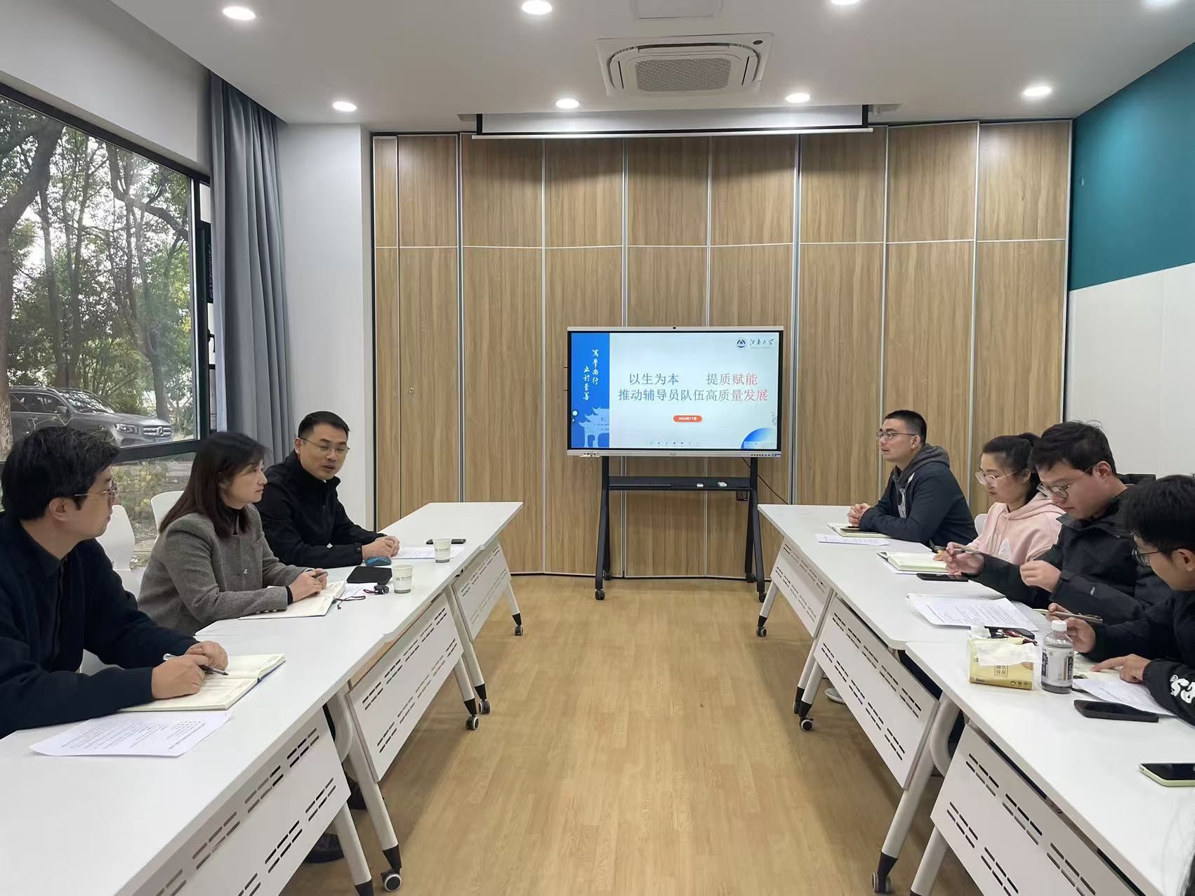 11月18日,世界杯官网在南区“一站式”学生社区开展学生工作例会暨第26期“周一晨读会”。学院党委副书记兼副院长林丹,学工办主任兼分团委书记周春江及全体辅导员参加。世界杯官网学生工作处副处长俞立峰受邀做《以生为本提质赋能推动辅导员队伍高质量发展》专题报告。