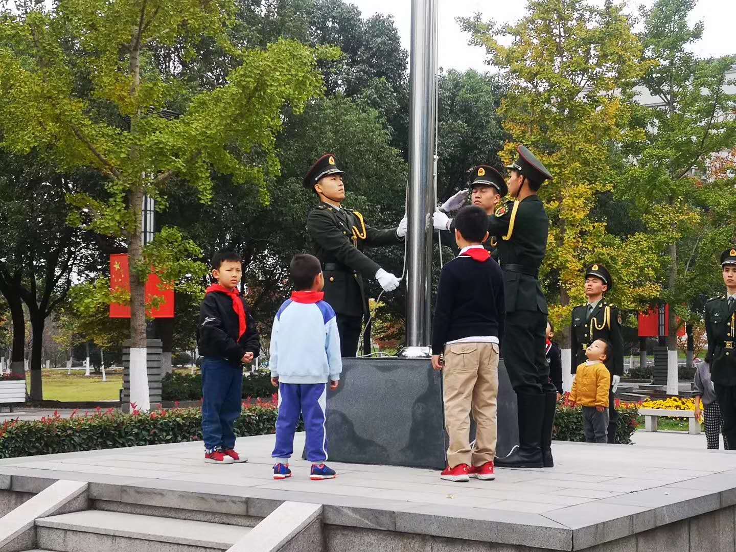 与国旗班合影