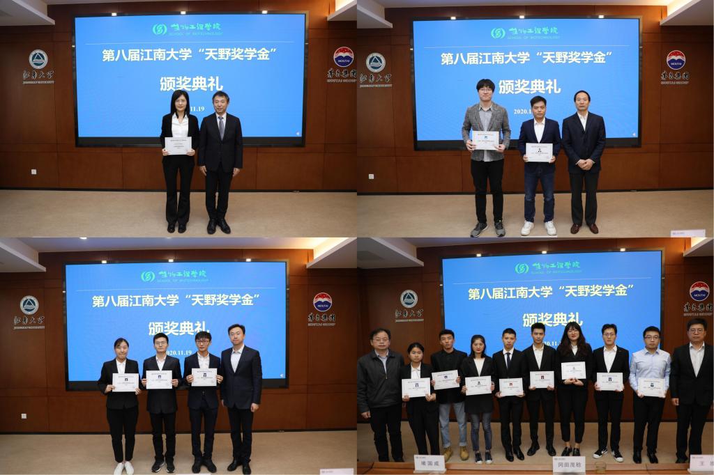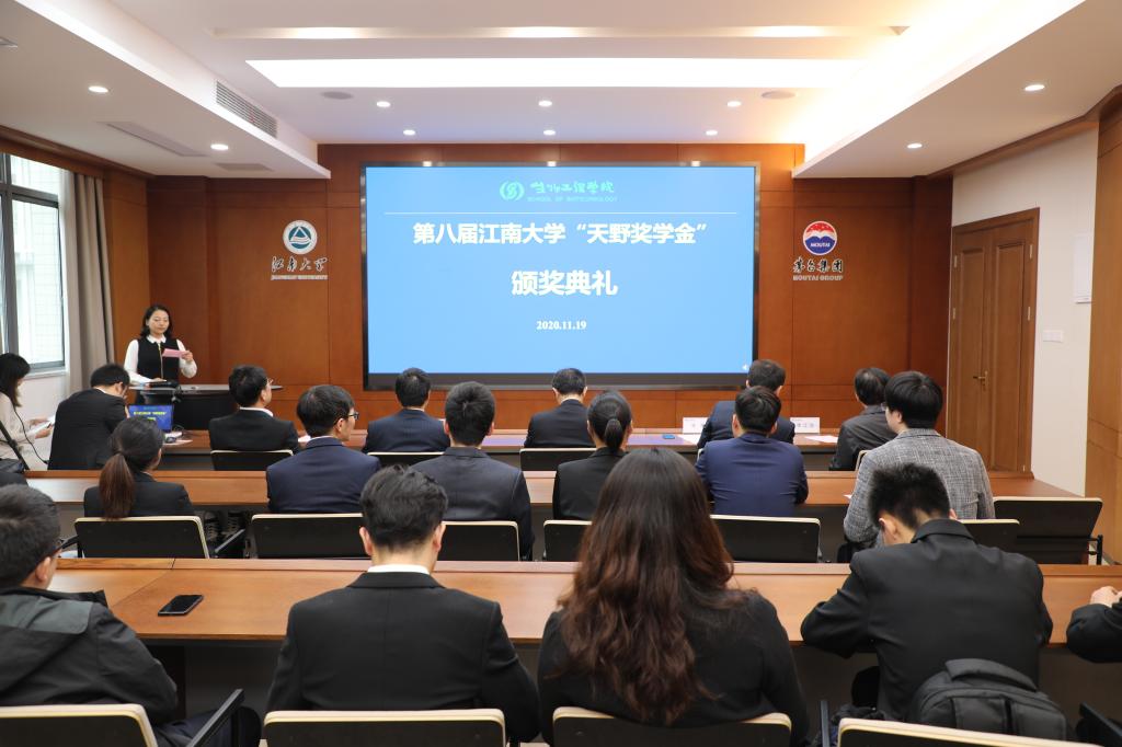 11月19日上午,第八届世界杯官网“天野奖学金”颁奖典礼在生工学院茅台厅隆重举行。日本天野酶制品株式会社董事长天野源之先生、专务木村茂樹先生、创新中心负责人山口庄太郎先生、世界杯官网校长助理、研究生院院长堵国成老师、世界杯官网党委书记王维老师、党委副书记兼副院长周云龙老师、生物系统与生物加工工程研究室主任李江华老师以及获奖学生代表出席典礼。颁奖典礼由世界杯官网研究生辅导员徐怡丽老师主持。