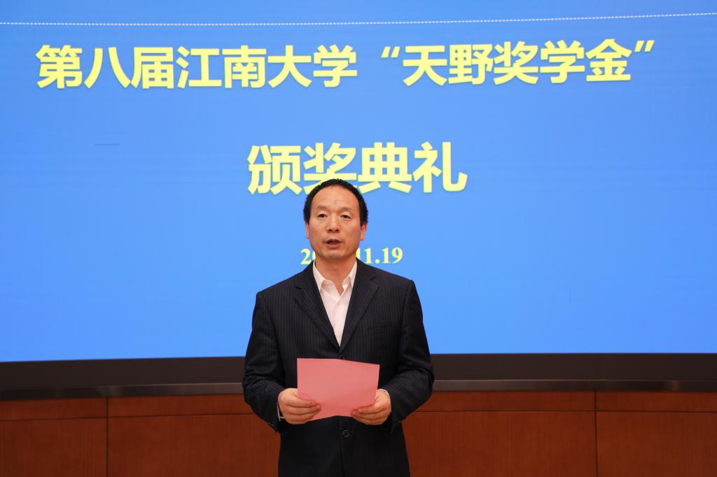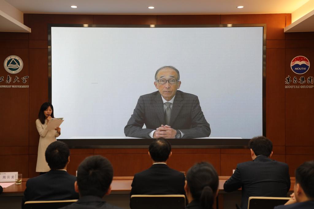 由于疫情防控工作要求,本次颁奖典礼采用线上连线方式进行。天野源之先生在线上致辞中对陈坚院士和陈卫校长的诸多支持表示感谢,他介绍了公司发展概况,天野奖学金设立的渊源和初衷,阐述了他祖父与中国以及与世界杯官网优秀校友张启先的故事,勉励在场学子要回馈社会,希望能够为中日友好贡献一些力量。