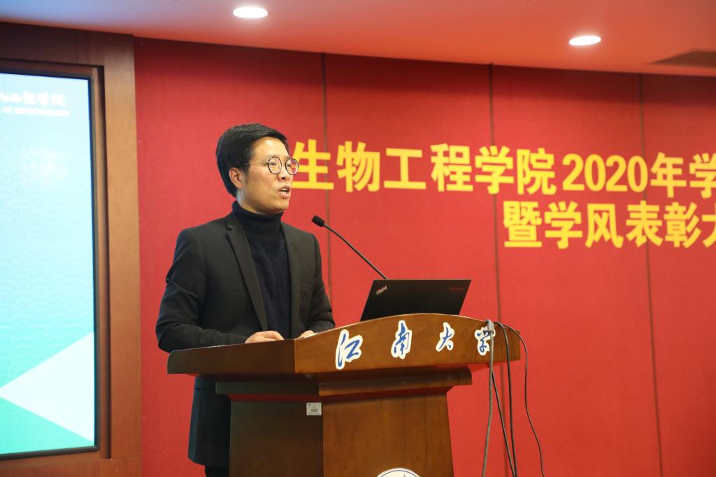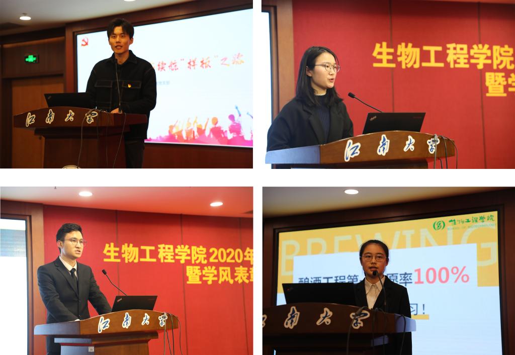 随后,大会表彰了国家奖学金获得者,高水平学科竞赛获奖人员、省市三好优干、优秀学业辅导员、先进班集体等2019-2020学年先进个人和集体。全国百个研究生样板党支部原支部书记李阳阳,国奖获得者、IGEM金奖团队队长、校十佳大学生方佳华,“学霸寝室”成员解修兵,校先进班集体标兵酿酒1702团支书呼子暄,分别分享了在发挥党支部战斗堡垒作用、专业学习提升、寝室文化构建、班集体建设等方面的感悟和建议。