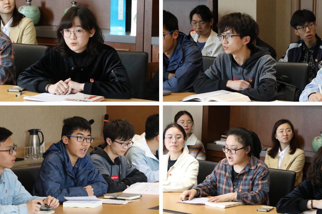 活动伊始,生工1802团支书袁炜佳从团结奋进、向学进取、勇于担当三个方面向陈校长汇报了团支部一年多来的新成绩。团支部学生庞子萱、吴季恒、刘源、袁小珂分别分享了自己阅读《红星照耀中国》、《道路与选择》、《中国共产党简史》、《大道》四本书籍后的心得,并结合自身学习和生活从体育精神、个人规划、精准扶贫、文化自信几个方面畅谈了自己的收获和感悟。
