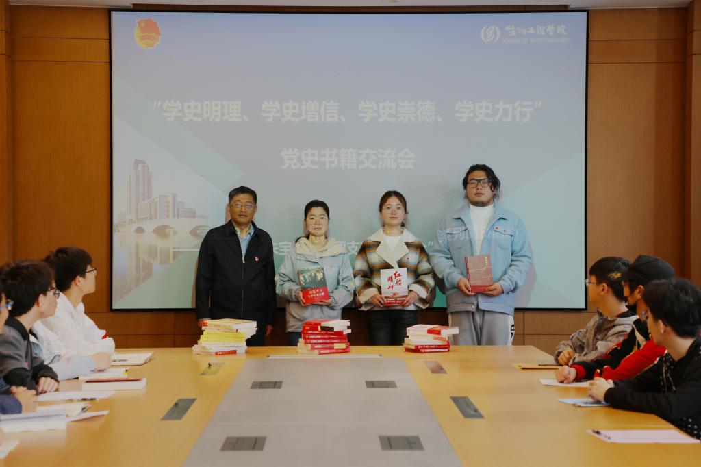 活动最后,陈卫校长赠送班级团支部《触摸历史》、《红船精神》、《习近平与大学生朋友们》三本书,并在书上手写寄语激励同学们。同学们将实验时精心所作的党徽、校徽等平板菌绘图赠予陈卫校长,师生互留祝福、互赠心意,现场温馨感人。