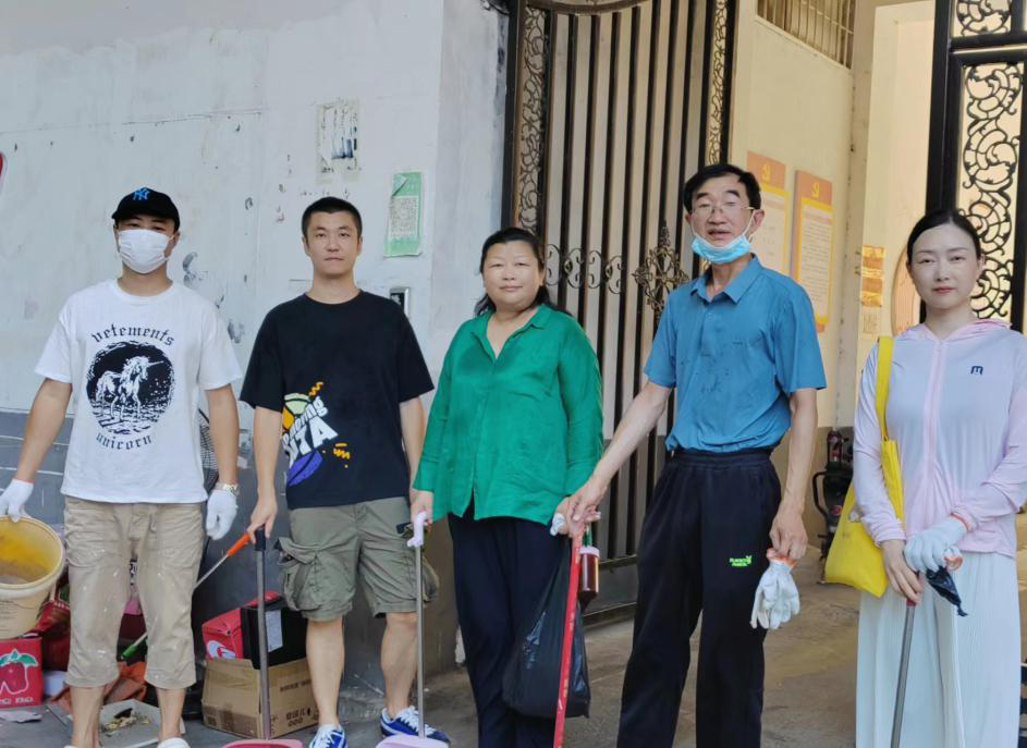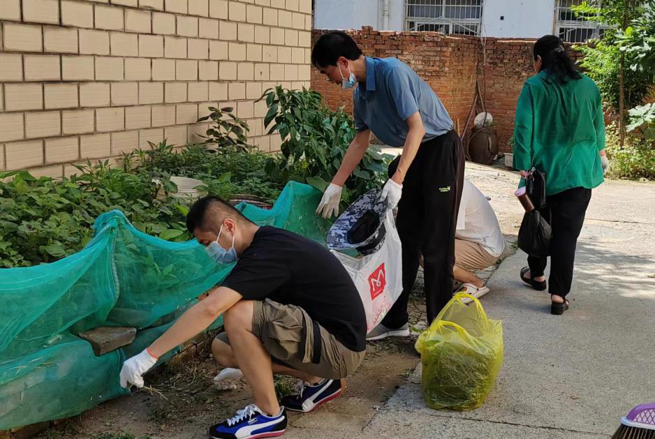 在永乐社区工作人员的统一安排下,党员教师们帮助该社区居民打扫门前和楼道卫生、清除楼道杂物和积存垃圾,清理楼道内各类小广告。大家分工合作,手拿工具拔除杂草,细心清理每个卫生死角,把脏、乱、差地带清理得干干净净,社区环境焕然一新。