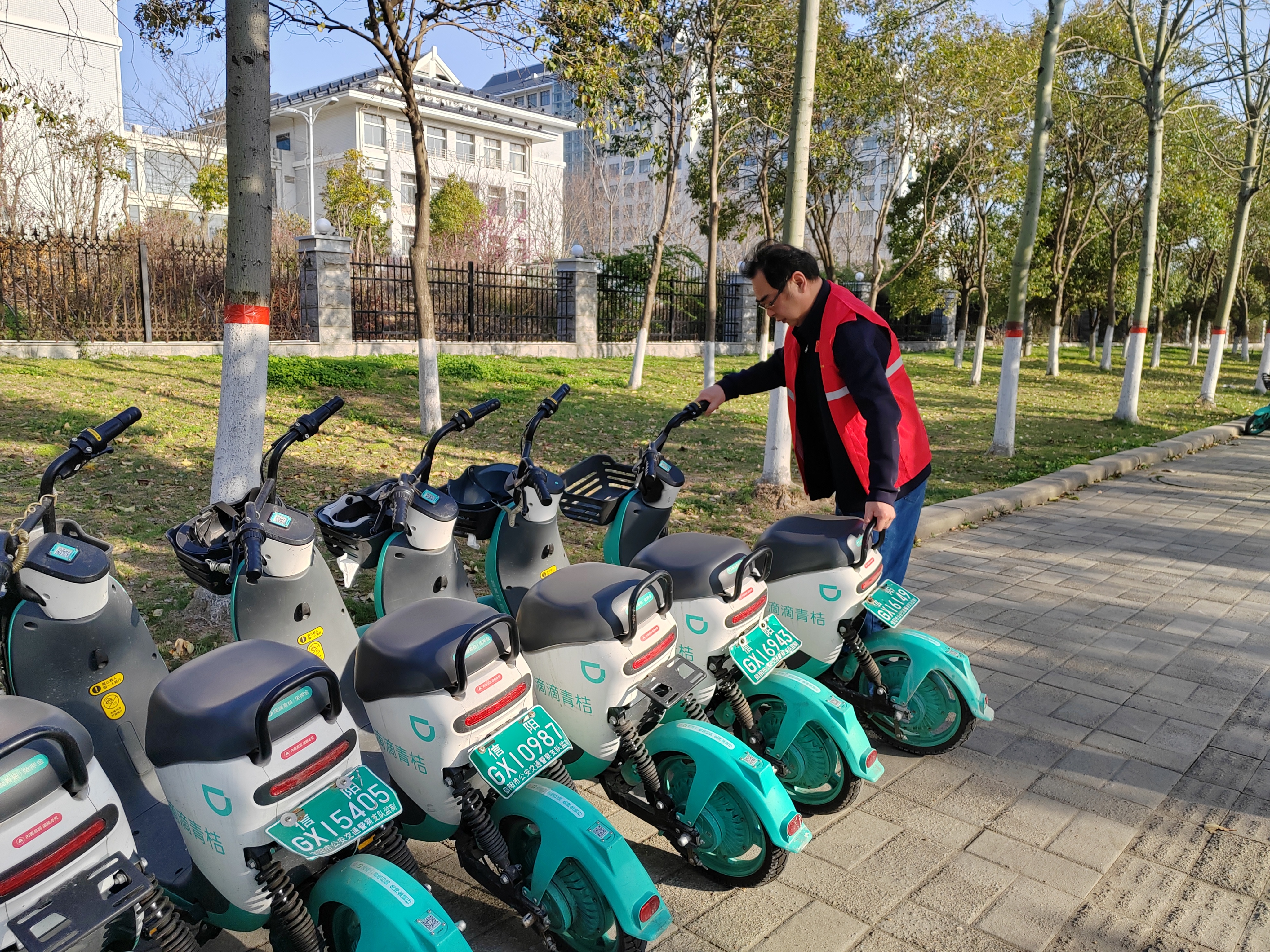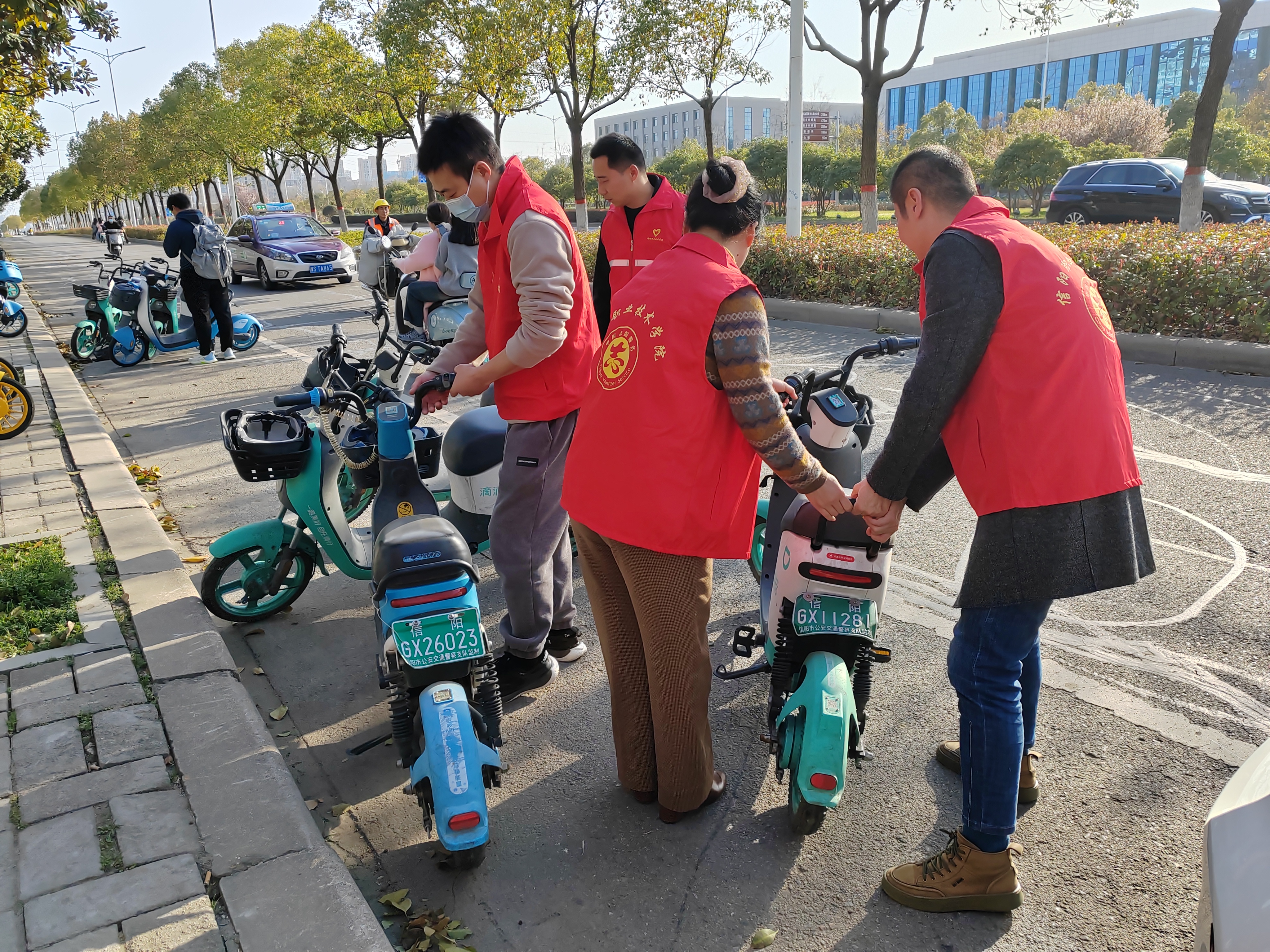 共享单车随骑随停的运营模式一方面丰富了人们的出行方式,另一方面也存在骑行者使用后无序停放现象,从而造成交通堵塞和安全隐患。活动中,国教院志愿者们或扶起歪倒在路边的共享单车,或劝说引导违规停放者将单车停放到规定位置,身体力行向市民倡导文明骑行,规范停车,共创安全、畅通、和谐、文明的交通环境!