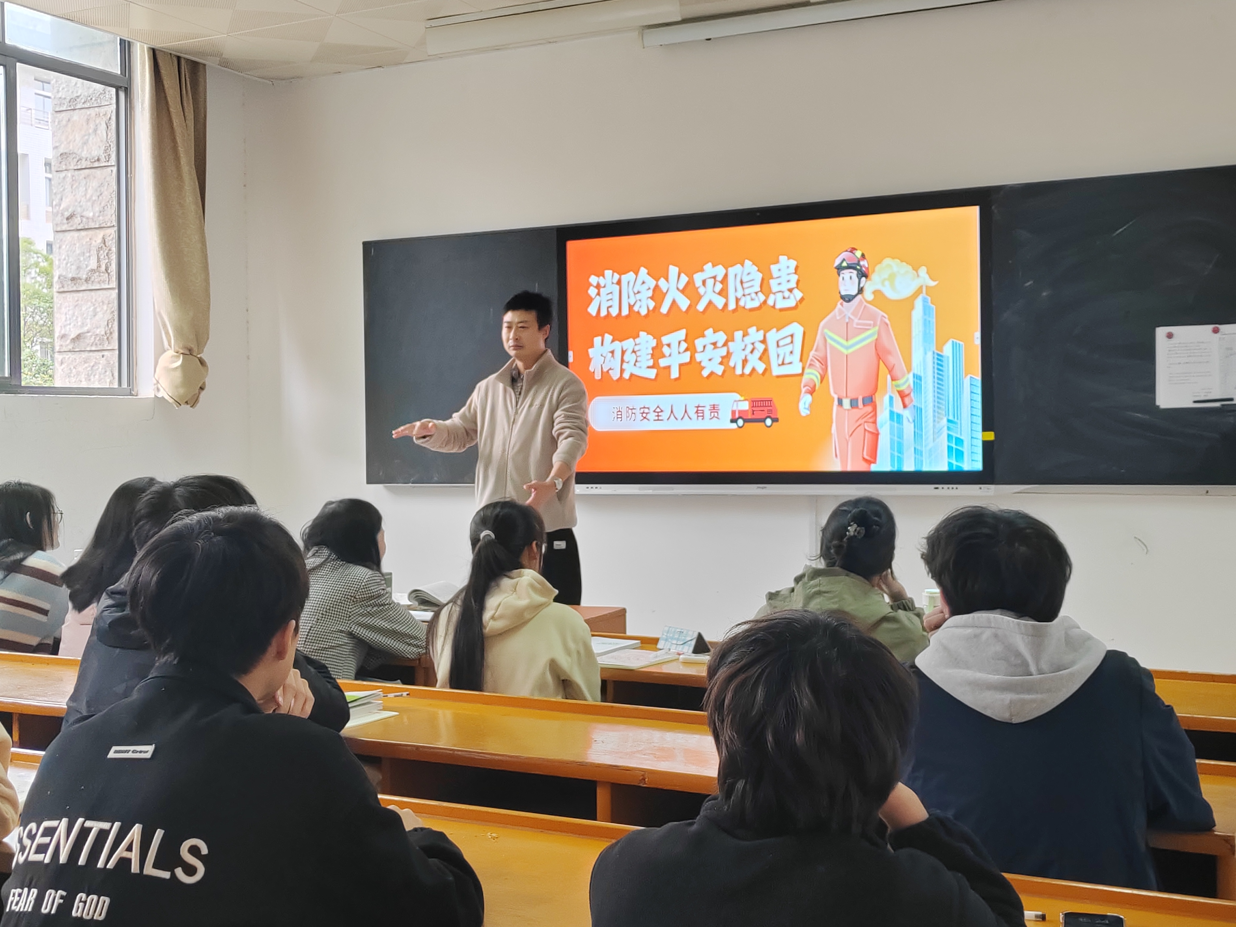 三是李院长带队对日护班教室和办公室进行了安全检查,强调严禁违规使用大功率电器、严禁在安全通道给电动车充电、严禁使用明火和吸烟等管理要求。同时,日语教师岳嘉嘉以“消除火灾隐患、构建平安校园”为主题给日护专业学生开展消防教育宣传,普及消防安全知识,提升学生们的消防安全意识和自防自救能力。(通讯员:孔学志 审稿:李晓艳)
