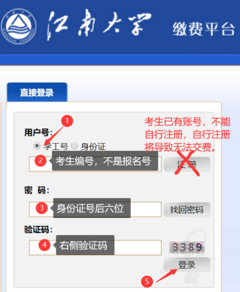 缴费说明:进入复试考生在学院规定的时间内登录“世界杯官网缴费平台”交纳复试费用,复试收费标准:80元/生。缴费网址:http://pay.jiangnan.edu.cn/payment/。登录账号为准考证上的考生编号,登录密码为身份证后六位(友情提醒:考生账号已开通,切勿自行注册)。按照提示交费(使用网银),并打印或截图保存付费凭证。