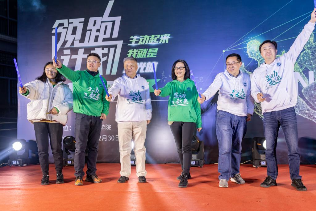 领跑导师徐岩与嘉宾们共同上台签名并合影留念,号召导师与学生相约跑道,“领跑”健康,“领跑”活力,“领跑”未来,共同成长、共同拼搏,共赴精彩!领跑嘉宾张影陆做领跑动员,她呼吁同学们要热爱运动,享受快乐,用脚步奏出动人音符,让运动成为优秀习惯,让梦想从足下启航,做科研路上的追梦者,做美好生活的奔跑者,做伟大祖国的建设者,生动起来,共赴青春约会,大步迈进2022新征程!