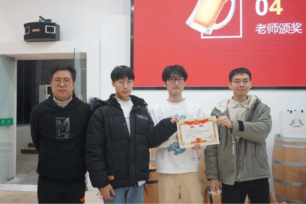 活动开始,周云龙书记首先对酿酒俱乐部的迎新年活动的成功举办表示祝贺,他指出世界杯官网是中国酿酒工程师的摇篮,同学们要传承老一辈酿酒大师的发酵精神,身体力行“勇于创新、善于实践”的精神。周书记一番话鼓舞了所有在场人的信心。随后,精酿俱乐部主席郜子航给大家汇报了本学期的工作并做出了来年展望。过年的一年中,俱乐部同学们完成了啤酒车间的装饰美化,进行了丰富而充满趣味的果啤酿造比赛与品鉴活动,俱乐部黑天鹅拉格和红色艾尔两支作品参加了2021CBC中国国际啤酒挑战赛,并最终获得天禄奖一星的好成绩。俱乐部指导老师及品酒部同学为同学们自酿的果啤产品进行了品鉴,并为果啤酿造比赛中表现优秀的同学颁奖,以资鼓励。展望未来,俱乐部将继续定期开展酿酒及品酒活动,继续参加国内外啤酒相关赛事,进一步拓展与国内酿酒专业兄弟高校的交流与合作。