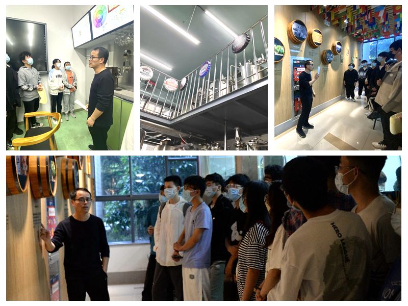 按照疫情防控要求,在自觉做好个人防护的基础上,郑飞云老师带领酿酒2101班和2102班在校同学分批次有序参观了生工学院酿酒实践基地与世界杯官网酒科技馆,了解酒的相关历史、发展和制作工艺等。在酿酒实践基地门口的墙上,挂着介绍啤酒酿造历史的酒桶,郑老师精彩绝伦的讲解让同学们身临其境,如同亲身见证了前人发现并深化有关酿酒工艺的历史。基地内部展示了啤酒精酿的生产设备,郑老师就啤酒的制作工艺以及啤酒发展至今的改进和突破等内容,对同学们进行了科普介绍。