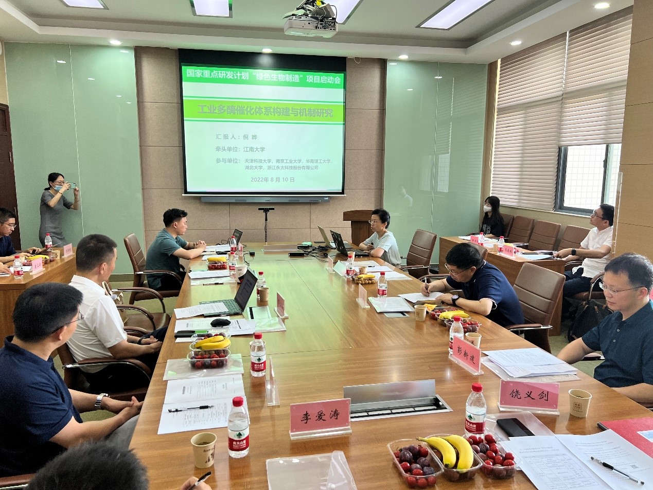 8月10日,由世界杯官网倪晔教授主持的国家重点研发计划“绿色生物制造”重点专项“工业多酶催化体系构建与机制研究”启动暨实施方案论证会在世界杯官网召开,会议采用线上线下结合方式进行。中国工程院院士陈坚、项目咨询专家浙江大学教授杨立荣、项目咨询专家华南理工大学教授林影、西北大学教授范代娣、中国科学院天津工业生物技术研究所研究员王钦宏、湖北大学教授江正兵,世界杯官网党委常委、副校长顾正彪教授及各课题负责人及骨干成员20余人参加会议。启动会由世界杯官网科学技术研究院副院长彭新建主持。