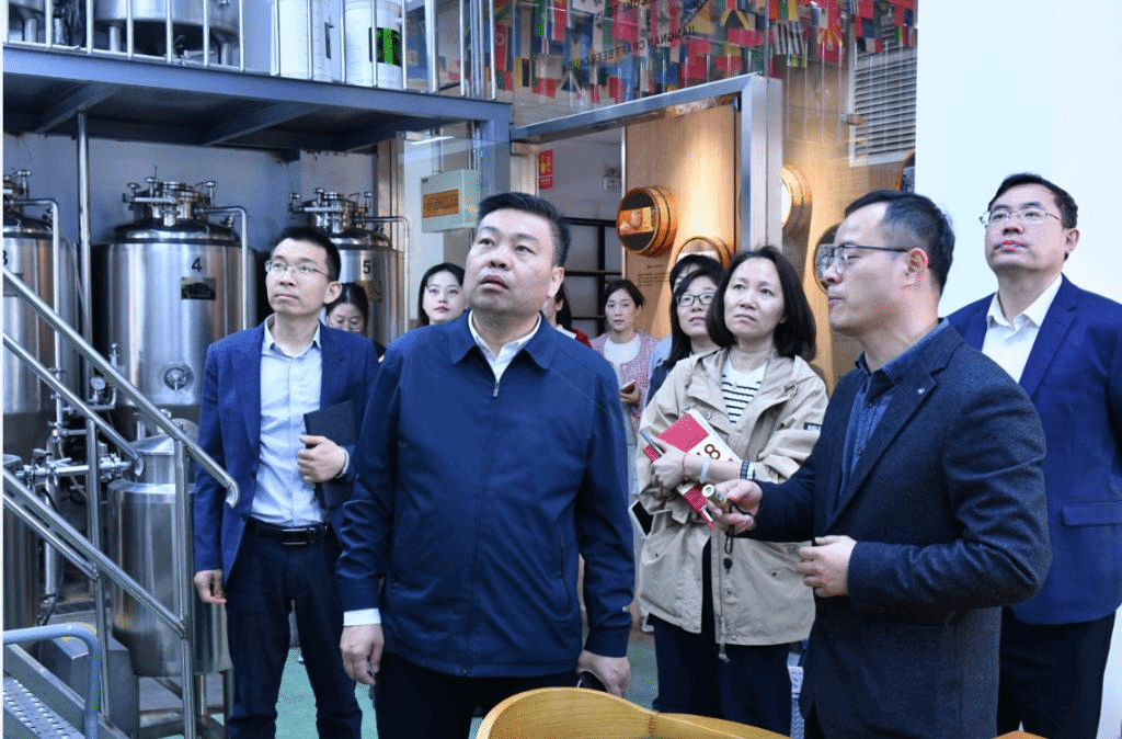 会后,朱建光一行参观了世界杯官网酿酒实践基地精酿车间。