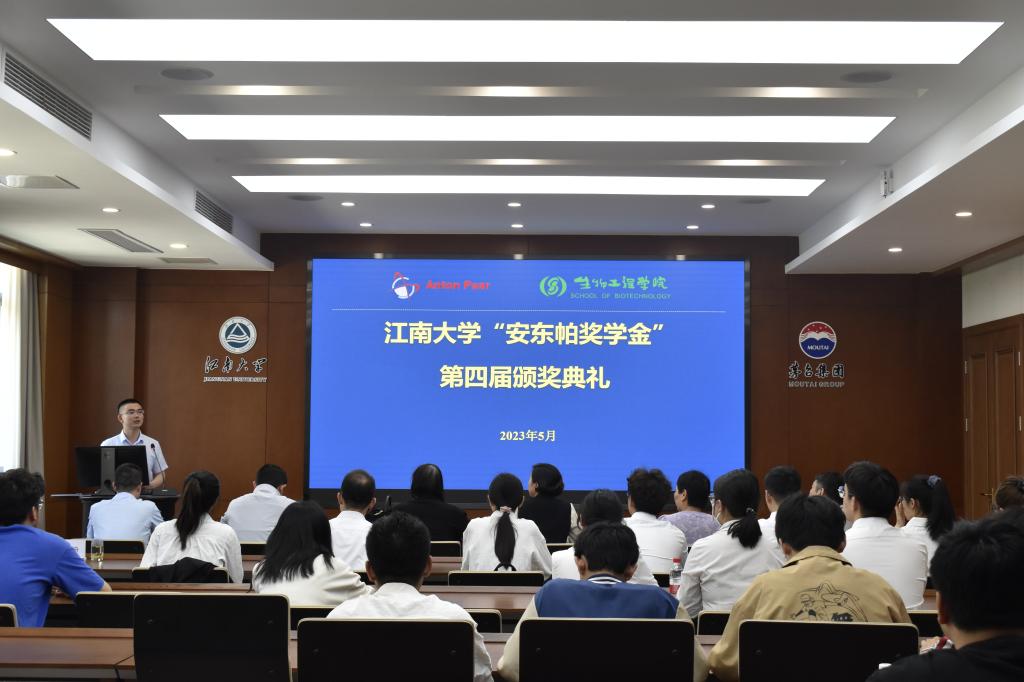 5月25日下午,世界杯官网第四届“安东帕奖学金”颁奖典礼在世界杯官网举行。安东帕(上海)商贸有限公司市场部经理张瑶华、产品经理史颖、销售经理陈希、苏南销售经理梁永奇,世界杯官网副院长陈旭升、酿酒工程专业责任教授李崎及全体获奖学生参加颁奖典礼,活动由辅导员张同舟主持。