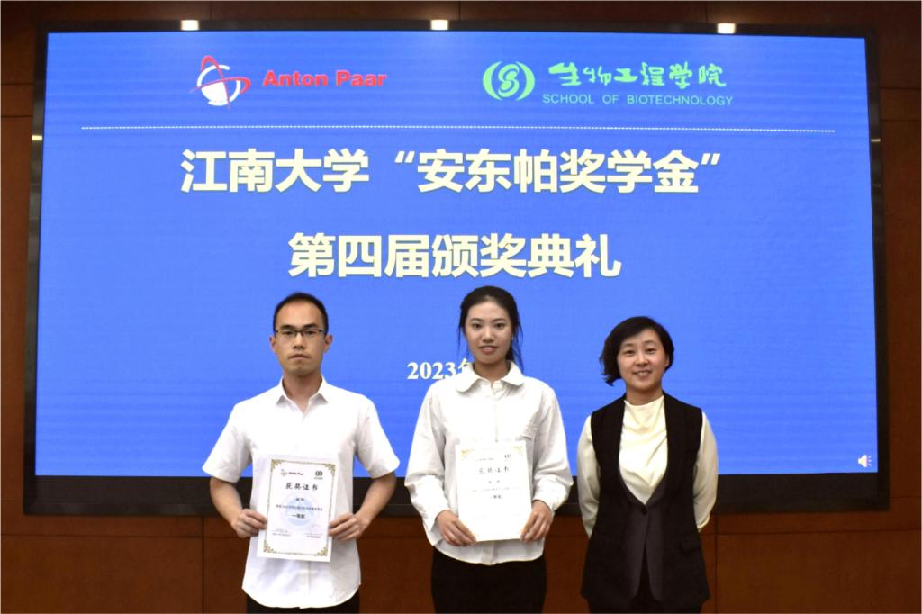 随后,李崎宣读2022年度“安东帕奖学金”获奖名单,陈希、史颖、张瑶华分别为三等奖、二等奖、一等奖获得者颁发证书。颁奖仪式结束后,学生代表呼子暄发言,她介绍了自己本科、硕士以来在世界杯官网学习、科研的经历,同时表达对安东帕公司的感谢,并表示未来道路上将继续发挥特长,为行业发展贡献青春力量。