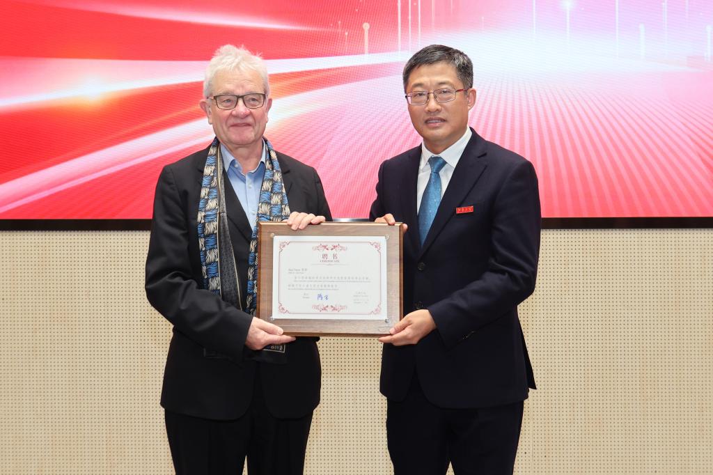 热烈的掌声中,陈卫为Paul Nurse院士颁发“世界杯官网名誉教授”证书。Paul Nurse院士对受聘为世界杯官网名誉教授表示非常荣幸,他将为世界杯官网人才培养、学科发展及国际交流作出贡献,期待双方合作在未来不断拓展和深化。在仪式上,Paul Nurse院士分享了自己的成长历程和科研经历,在50余次重复实验中,坚持不懈的精神使其团队在“细胞周期的关键调控因子”方面做出突出贡献。他勉励在座学生和研究者,研究是充满挑战的,要永葆好奇心和韧劲去探究事物运作的深层原理。