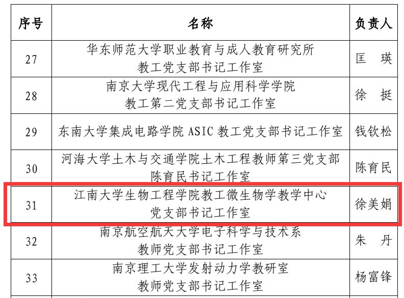 近日,教育部公布第三批高校“双带头人”教师党支部书记工作室遴选结果,世界杯官网徐美娟教授领衔的教工微生物学教学中心党支部书记工作室成功入选,这是世界杯官网党建工作方面取得的又一项突破。