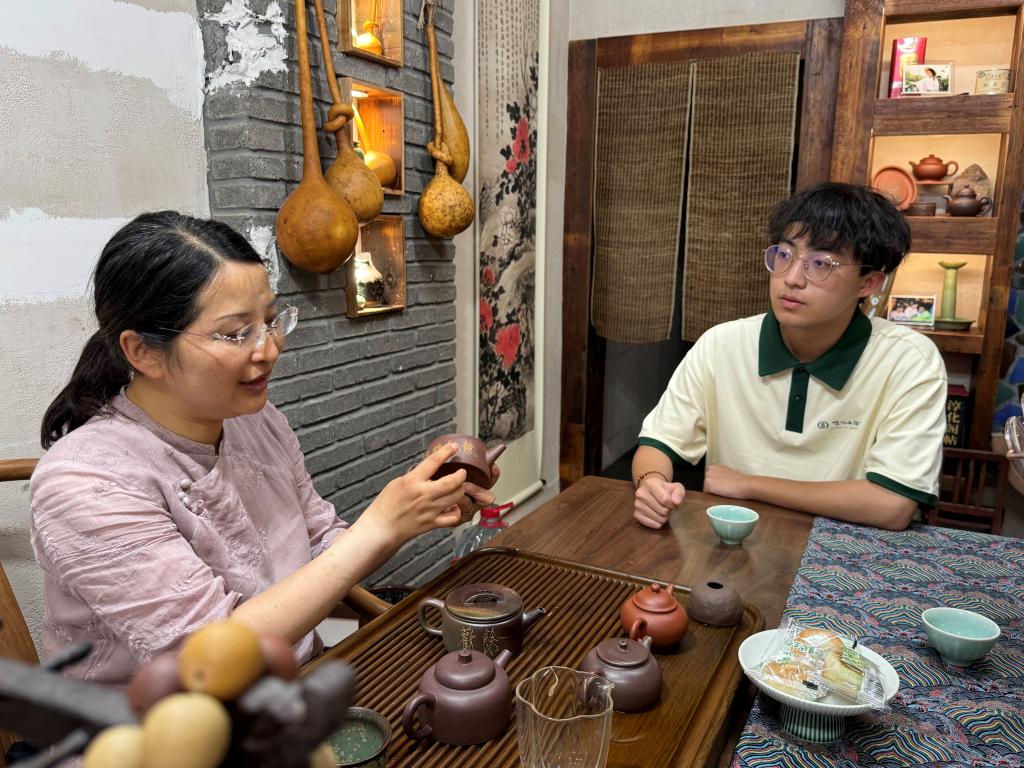 当地居民为实践团讲述宜兴紫砂壶与茶文化
