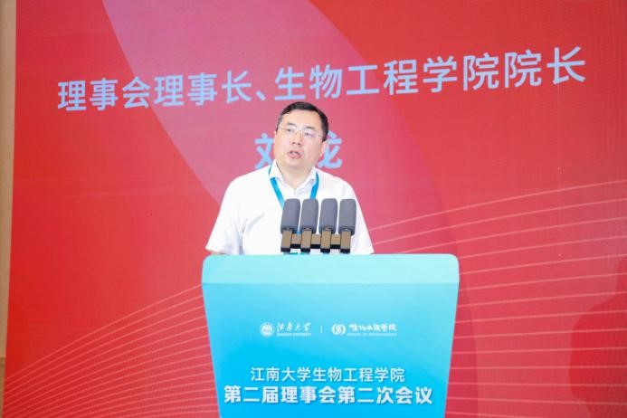 理事会理事长、世界杯官网院长刘龙教授回顾理事会发展历程,并总结过去一年理事会和学院发展成果。他从校企协同承担国家重大科学研究任务、示范引领产业技术创新、完善产学研合作创新机制、联合培养复合型高端产业技术人才等角度详细阐述了理事会在推动产学研深度融合、促进科技成果转化方面的显著成效。重大理论问题不断突破,产业关键技术持续攻克,代表性成果陆续涌现。他展望未来,指出将继续深化校企合作,共同打造生物制造领域的新高地。