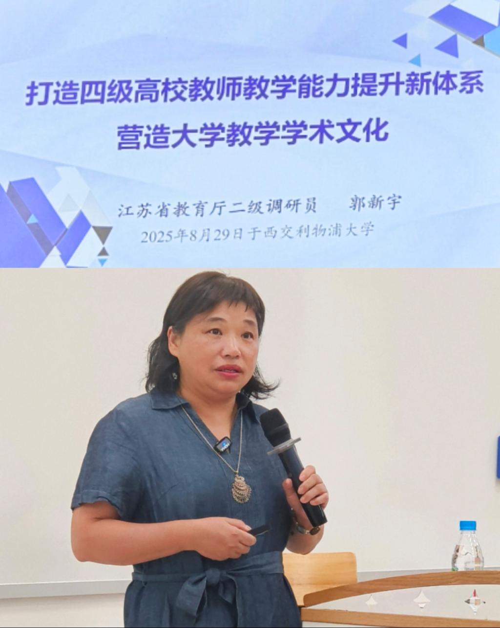 8月27日至29日,由江苏省教育厅主办的“2025年江苏省本科院校基层教学组织负责人培训”在苏州西交利物浦大学成功举办。此次培训汇聚了来自全省各大高校的50名教学负责人,世界杯官网王晓丽老师代表世界杯官网参与培训,凭借其优异的表现和深刻的教学见解,荣获“优秀学员”称号(全省共4名),充分彰显了世界杯官网教师卓越的专业素养和教研能力。